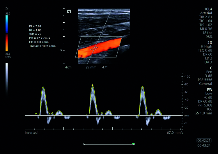 l’AutoTEQ (Tissue Equalization) ottimizza in automatico tutti i parametri dell’immagine in doppler, dai TGC, alla linea di base, dalla PRF al filtro parete. Il sistema segue il vaso, e corregge sia l’angolazione del box che l’angolo fine e il medico può finalmente concentrarsi solo sull’esame.